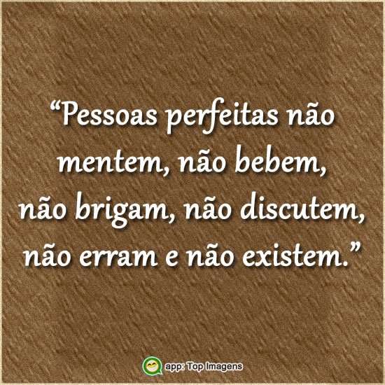 Pessoas perfeitas não mentem, não bebem, não brigam, não discutem, não erram e não existem.