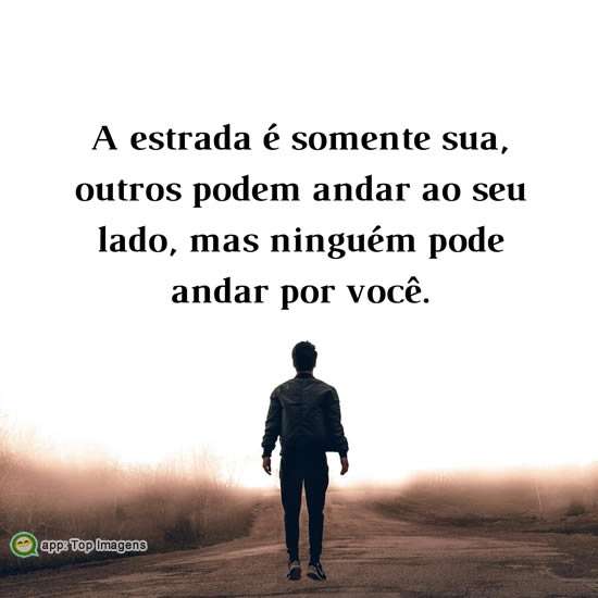 A estrada é somente sua, outros podem andar ao seu lado, mas ninguém pode andar por você.