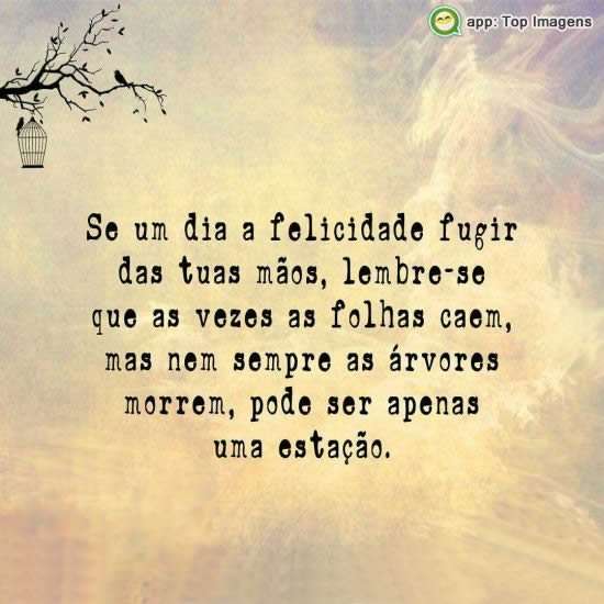 Se um dia a felicidade fugir das tuas mãos, lembre-se que às vezes as folhas caem, mas nem sempre as árvores morrem, pode ser apenas uma estação.