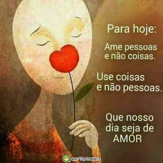 Para hoje: Ame as pessoas e não as coisas. Use coisas e não pessoas. Que nosso dia seja de Amor