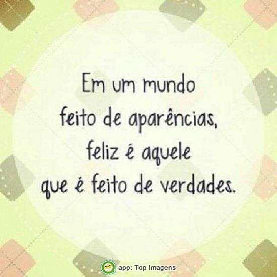 Em um mundo feito de aparências, feliz é aquele que é feito de verdades.