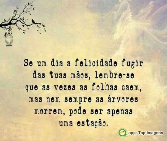 Se um dia a felicidade fugir das tuas mãos, lembre-se que as vezes as folhas caem, mas nem sempre as árvores morrem, pode ser apenas uma estação.