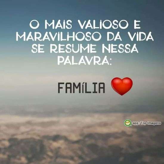 O mais valioso e maravilhoso da vida se resume nessa palavra: Família