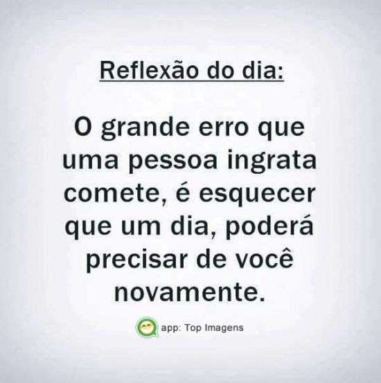 O grande erro que uma pessoa ingrata comete, é esquecer que um dia, poderá precisar de você novamente.