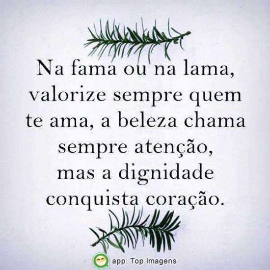 Na fama ou na lama, valorize sempre quem te ama, a beleza chama sempre atenção mas a dignidade conquista coração.