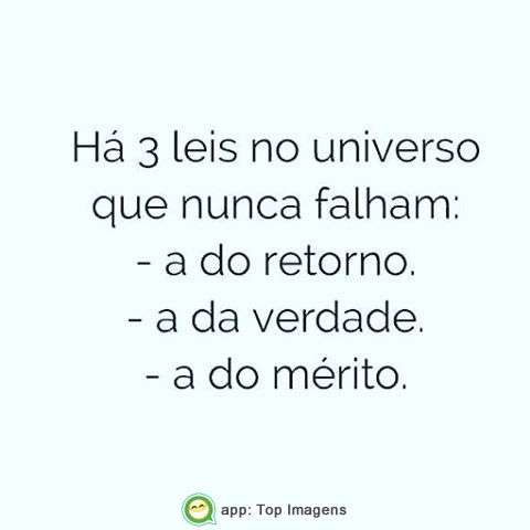 há 3 leis no universo que nunca falham: - A do retorno. - A da verdade. - A do mérito.