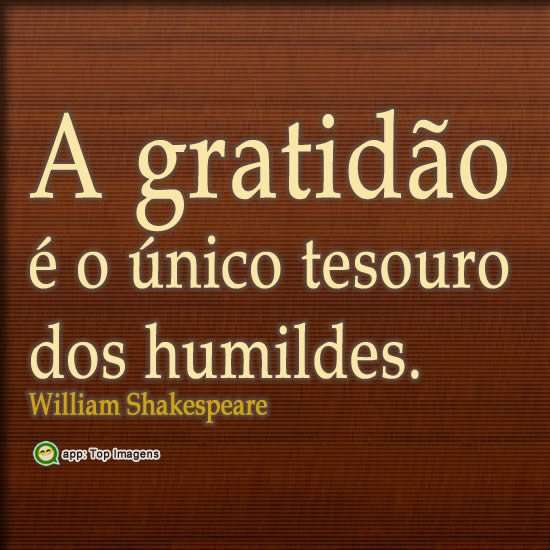 A gratidão é o único tesouro dos humildes. William Shakespeare