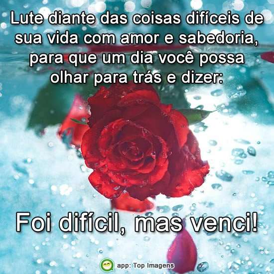 Lute diante das coisas difíceis de sua vida com amor e sabedoria, para que um dia você possa olhar para trás e dizer: