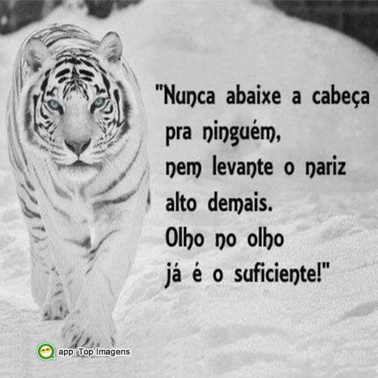 Nunca abaixe a cabeça pra ninguém, nem levante o nariz alto demais. Olho no olho já é o suficiente!