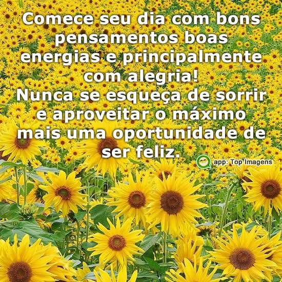 Comece seu dia com bons pensamentos boas energias e principalmente com alegria!