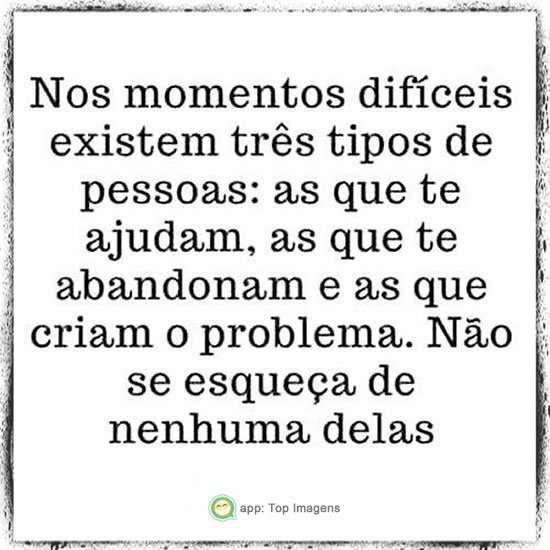 Nos momentos difíceis existem três tipos de pessoas: as que te ajudam, as que te abandonam e as que criam o problema.