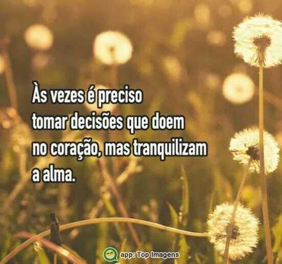 Às vezes é preciso tomar decisões que doem no coração mas tranquilizam a alma.