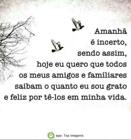 Amanhã é incerto, sendo assim, hoje eu quero que todos os meus familiares saibam o quanto sou grato e feliz por tê-los em minha vida.