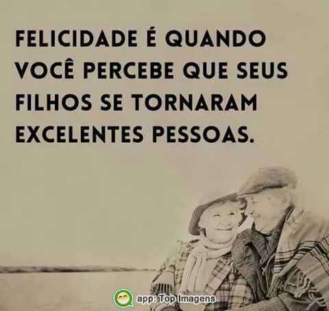 Felicidade é quando você percebe que seus filhos se tornam excelentes pessoas.
