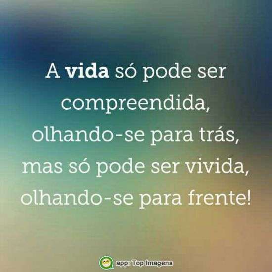 A vida só pode ser compreendida, olhando-se para trás, mas só pode ser vivida, olhando-se para frente!