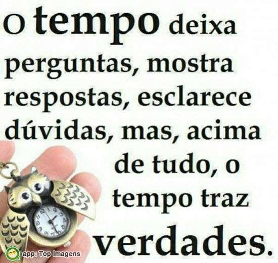 O tempo deixa perguntas, mostra respostas, esclarece dúvidas, mas acima de tudo, o tempo traz verdades.