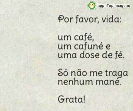 Por favor, vida: um café, um cafuné e uma dose de fé. Só não me traga nenhum mané. Grata!