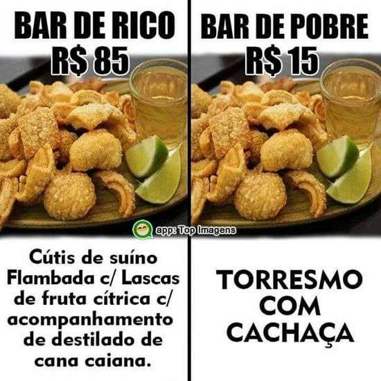 Cútis de suíno flambada c/ lascas de fruta cítrica c/ acompanhamento de destilado de cana caiana.