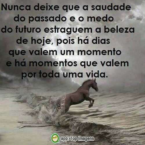 Nunca deixe que a saudade do passado e o medo do futuro estraguem a beleza de hoje, pois há dias que valem um momento e há momentos que valem por toda uma vida.