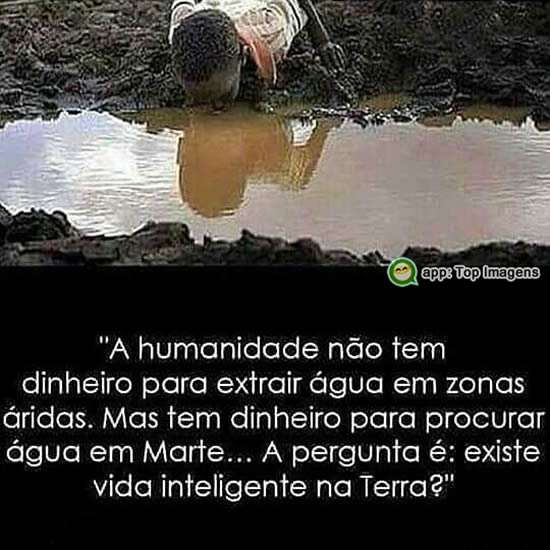 A humanidade não tem dinheiro para extrair água em zonas áridas. Mas tem dinheiro para procurar água em Marte... A pergunta é: Existe vida inteligente na terra?