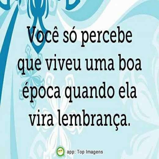 Você só percebe que viveu uma boa época quando ela vira lembrança.