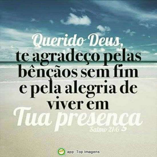 Querido Deus te agradeço pelas bênçãos sem fim e pela alegria de viver em tua presença. Salmo 21:6