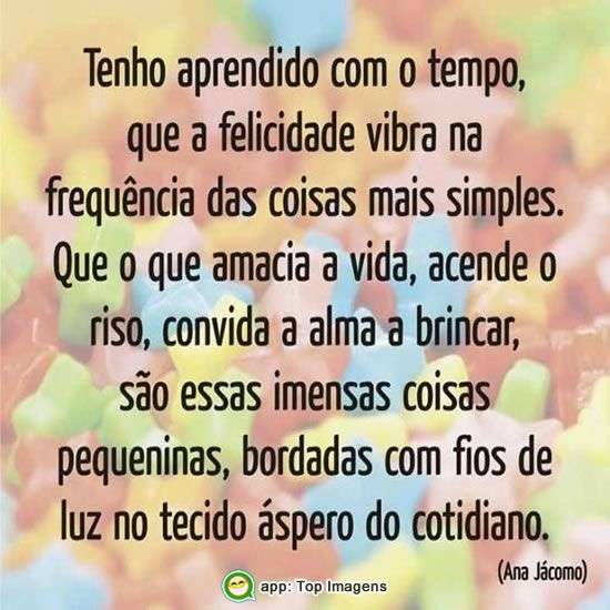Tenho a prendido com o tempo, que a felicidade vibra na frequência das coisas mais simples.