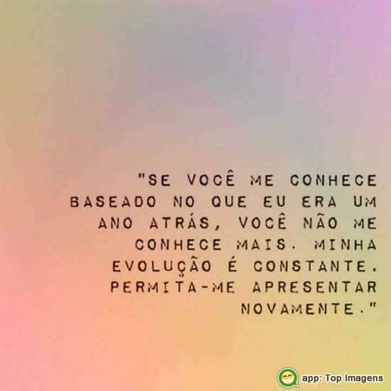 Se você me conhece baseado no que eu era um ano atrás, você não me conhece mais.