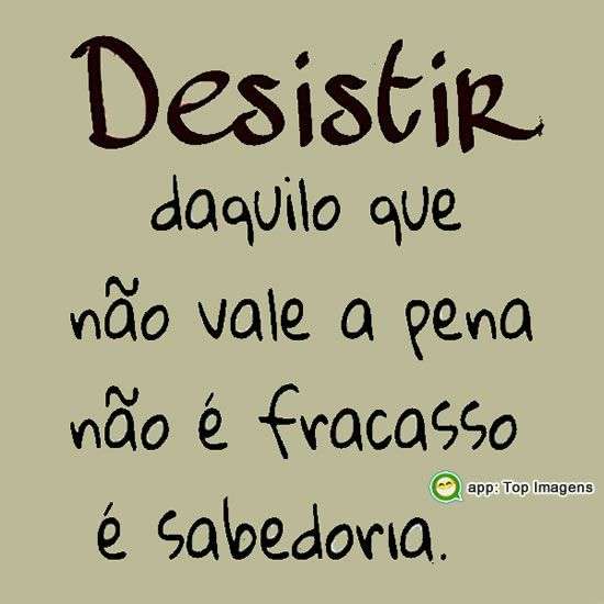 Desistir daquilo que não vale a pena não é fracasso é sabedoria.