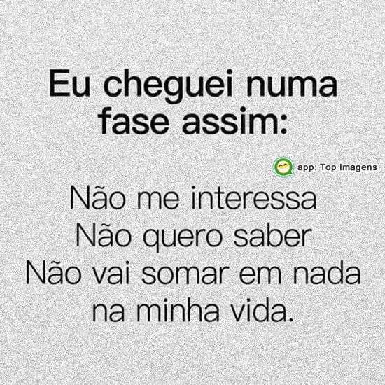 Eu cheguei numa faze assim: Não me interessa. Não quero saber. Não vai somar em nada na minha vida.