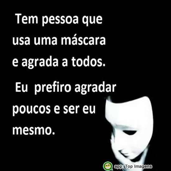 Tem pessoa que usa uma máscara e agrada a todos. Eu prefiro agradar poucos e ser eu mesmo.