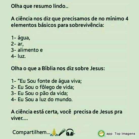 A ciência nos diz que precisamos de no mínimo 4 elementos básicos para sobrevivência: