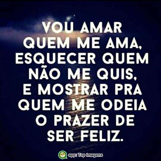 Vou amar quem me ama, esquecer quem não me quis, e mostrar pra quem me odeia o prazer de ser feliz.