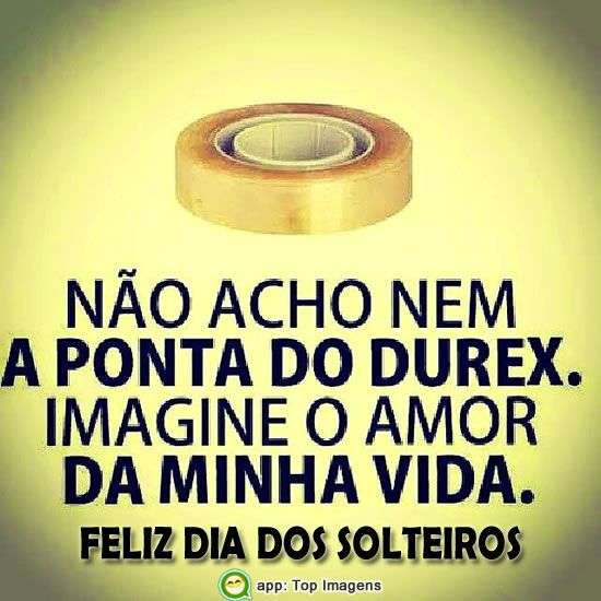 Não acho nem a ponta do durex. Imagine o amor da minha vida. Feliz dias dos Solteiros