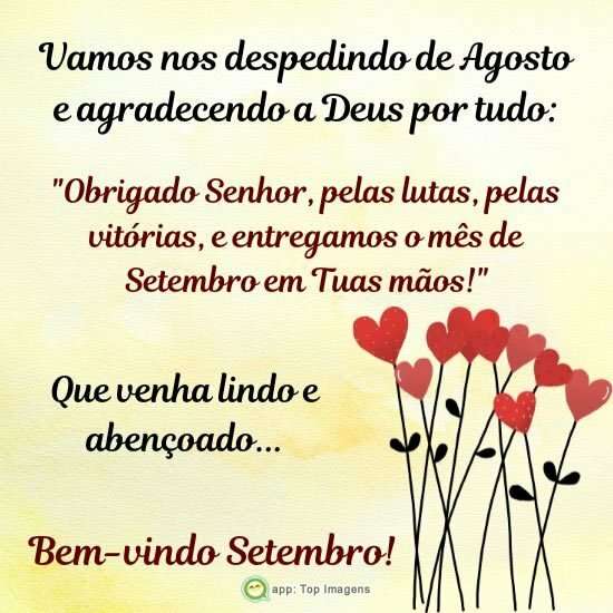 "Obrigado Senhor, pelas lutas, pelas vitórias, e entregamos o mês de Setembro em Tuas mãos!"
