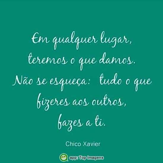 Em qualquer lugar, teremos o que damos. Não se esqueça: tudo que fizeres aos outros, fazes a ti.