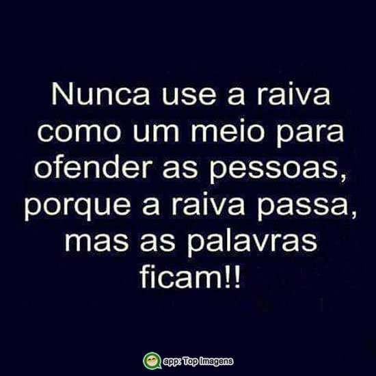 Nunca use a raiva como um meio para ofender as pessoas, porque a raiva passa, mas as palavras ficam!