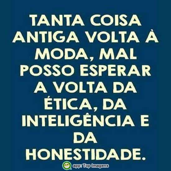 Tanta coisa antiga volta à moda, mal poso esperar a volta da ética, da inteligência e da honestidade.