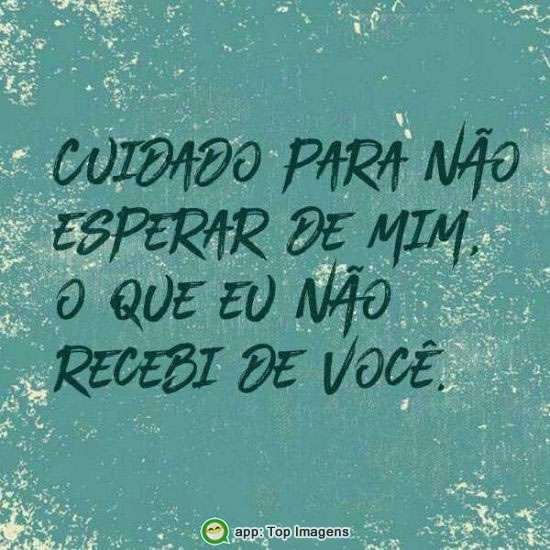 Cuidado para não esperar de mim, o que eu não recebi de você.