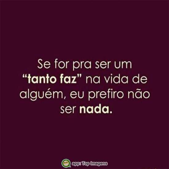 Se for pra ser um 'tanto faz" na vida de alguém, eu prefiro não ser nada.