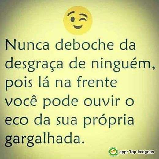 Nunca deboche da desgraça de ninguém, pois lá na frente você pode ouvir o eco da sua própria gargalhada.