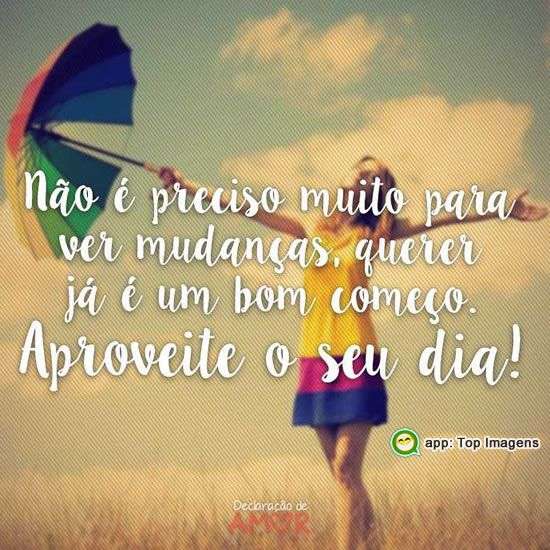 Não é preciso muito para ver mudanças, querer já é um bom começo. Aproveite o seu dia!