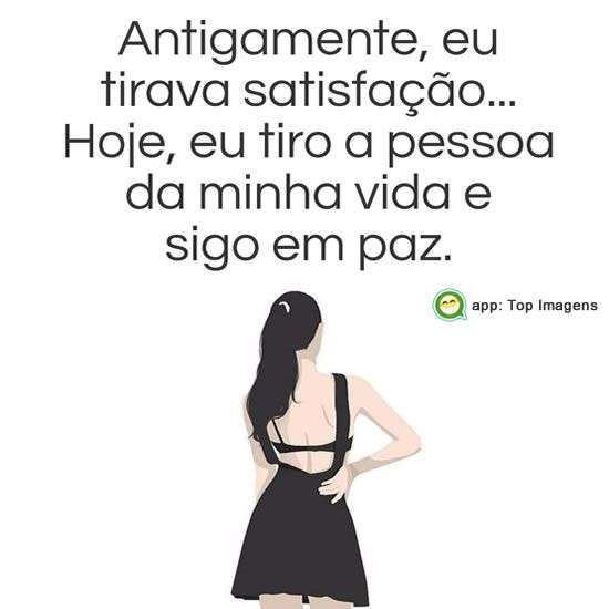 Antigamente, eu tirava satisfação... Hoje eu tiro a pessoa da minha vida e sigo em paz.