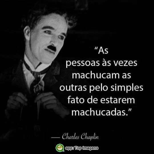 As pessoas às vezes machucam as outras pelo simples fato de estarem machucadas. Charles Chaplin