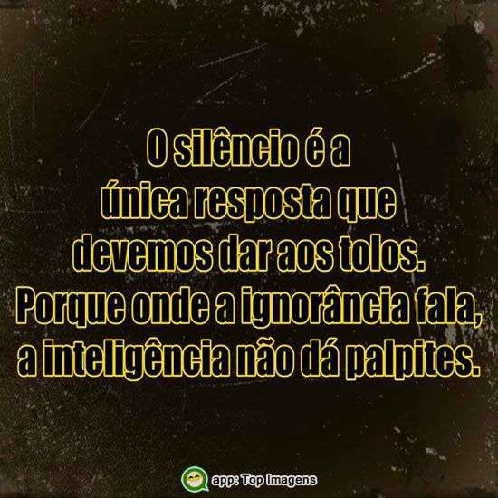 O silêncio é a única resposta que devemos dar aos tolos. Porque onde a ignorância fala, a inteligência não dá palpites.