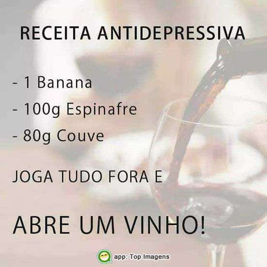Receita antidepressiva - 1 banana - 100g espinafre - 80g Couve Joga tudo fora e abre um vinho!