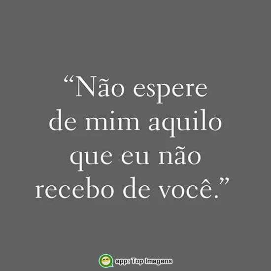 Não espere de mim aquilo que eu não recebo de você.