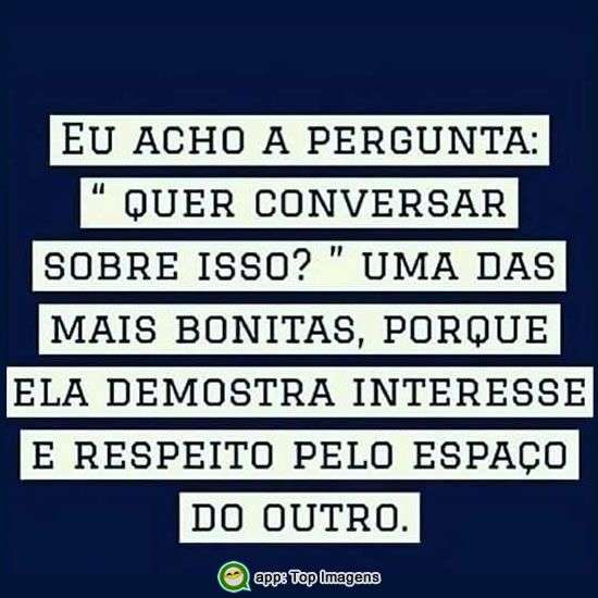 Eu acho a pergunta: "Quer conversar sobre isso?" Uma das mais bonitas, porque ela demonstra interesse e respeito pelo espaço do outro.