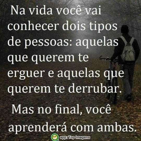 Na vida você vai conhecer dois tipos de pessoas: aquelas que querem te erguer e aquelas que querem te derrubar.