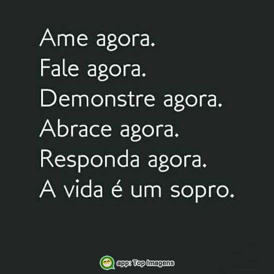 Ame agora. Fale agora. Demonstre agora. Responda agora. A vida é um sopro.